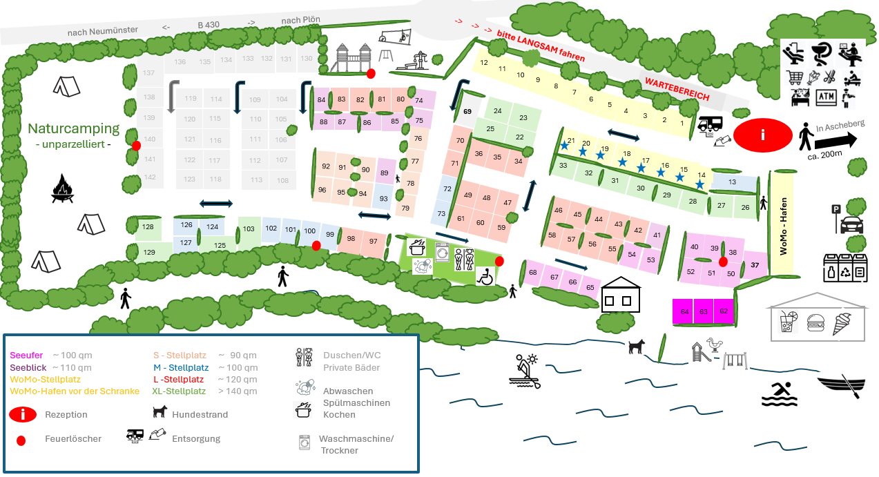 | Seeufer inkl. 2 Personen zzgl. Strom | 45,00 € | 43,00 € |